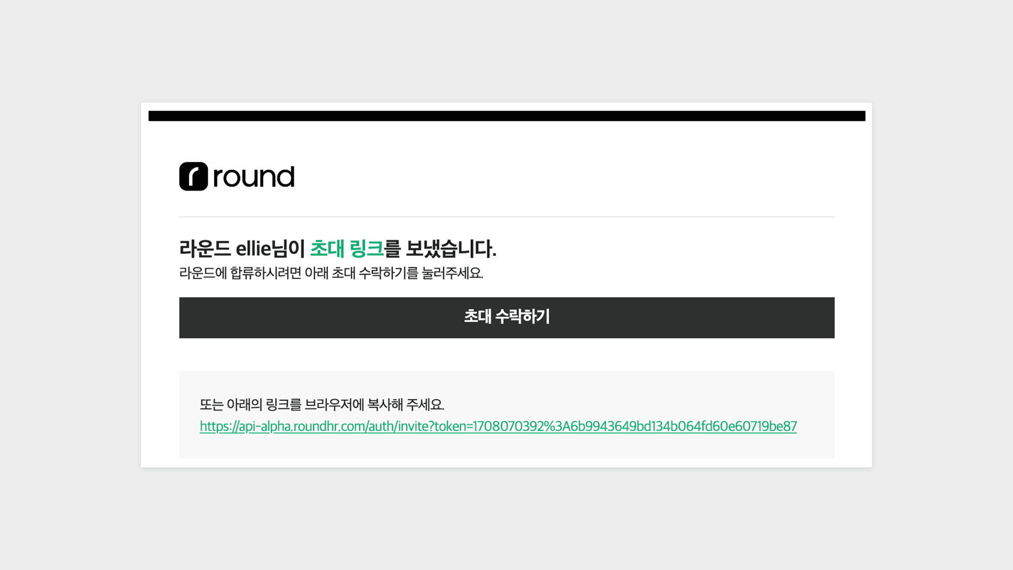 메일을 받은 채용 담당자는 초대 수락하기 버튼을 클릭하거나 링크를 브라우저에 복사하여 팀에 합류할 수 있습니다.